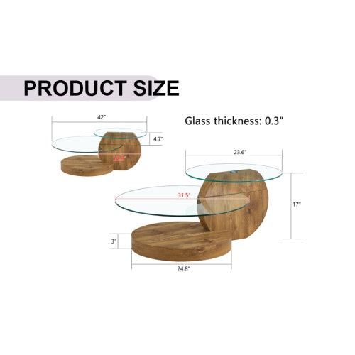 Modern And Practical Double-layer Round Table. Glass Tabletop, Wood MDF Table Legs. Suitable For Living Room and Bedroom