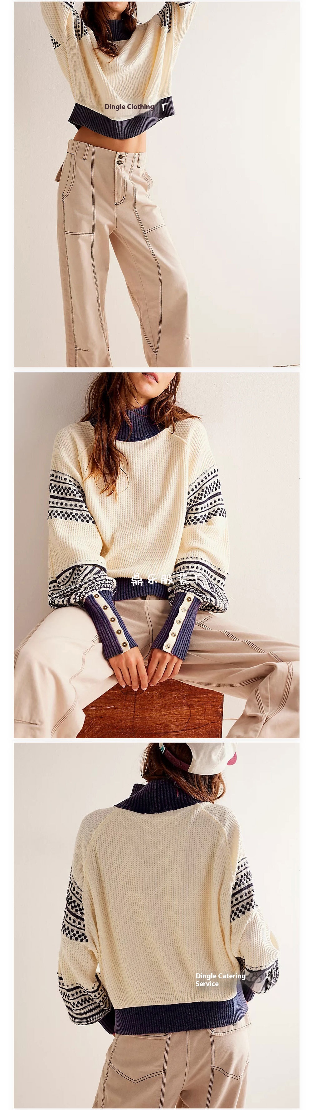 Multi-colored half-turtleneck fashion pullover, perfect for cross-border European and American women's clothing styles.